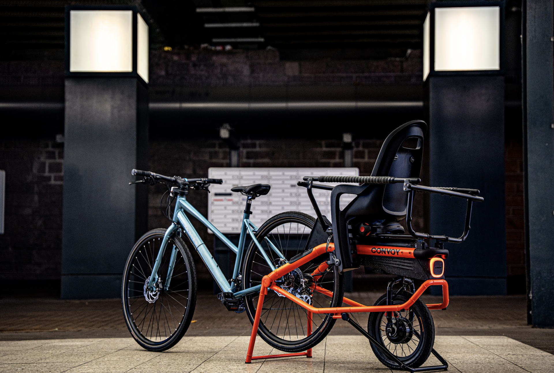 CONVOY transforms any adult bicycle into a family-ready utility vehicle, built to replace everyday short car journeys. A proprietary rear-axle mounts in seconds, adding a powerful motor for effortless electric assist and up to 50 kg luggage capacity perfect for kids, cargo, or pets. The patent-pending inline e-trailer architecture delivers true innovation: a wireless handlebar sensor combined with an actuated rear-wheel steering system keep bike and trailer perfectly aligned, offering the safety and ride feel of a longtail e-cargo bike with the versatility, lightweight, and easy storage of a trailer. CONVOY: your bike but better, way better.