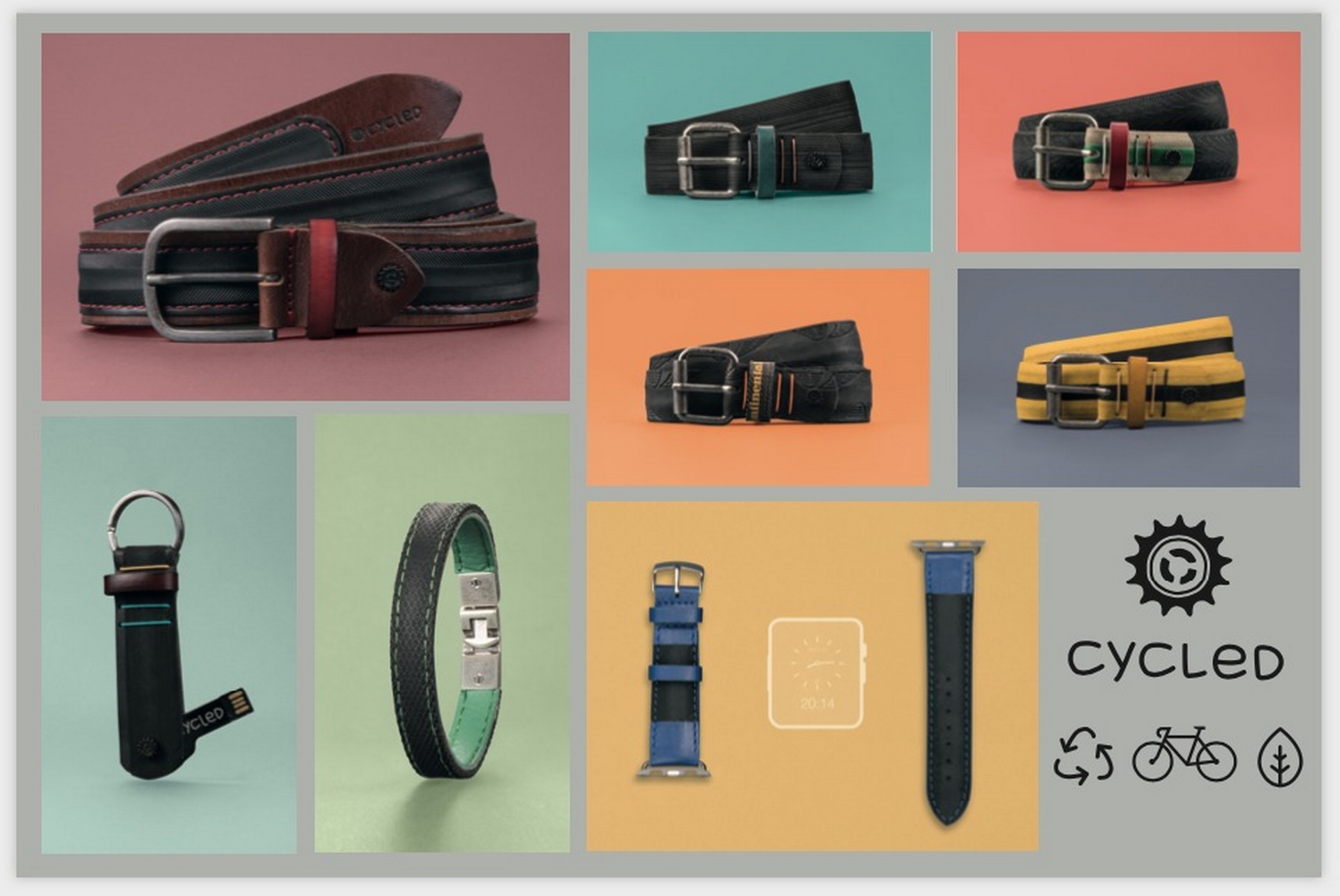 Cycled transforms the only thing that pollutes in a bike: The Tyre. Each one gains a new life through handcrafting and converted into a useful, indestructible and unique objects: Up-Cycle Belts and Accessories.