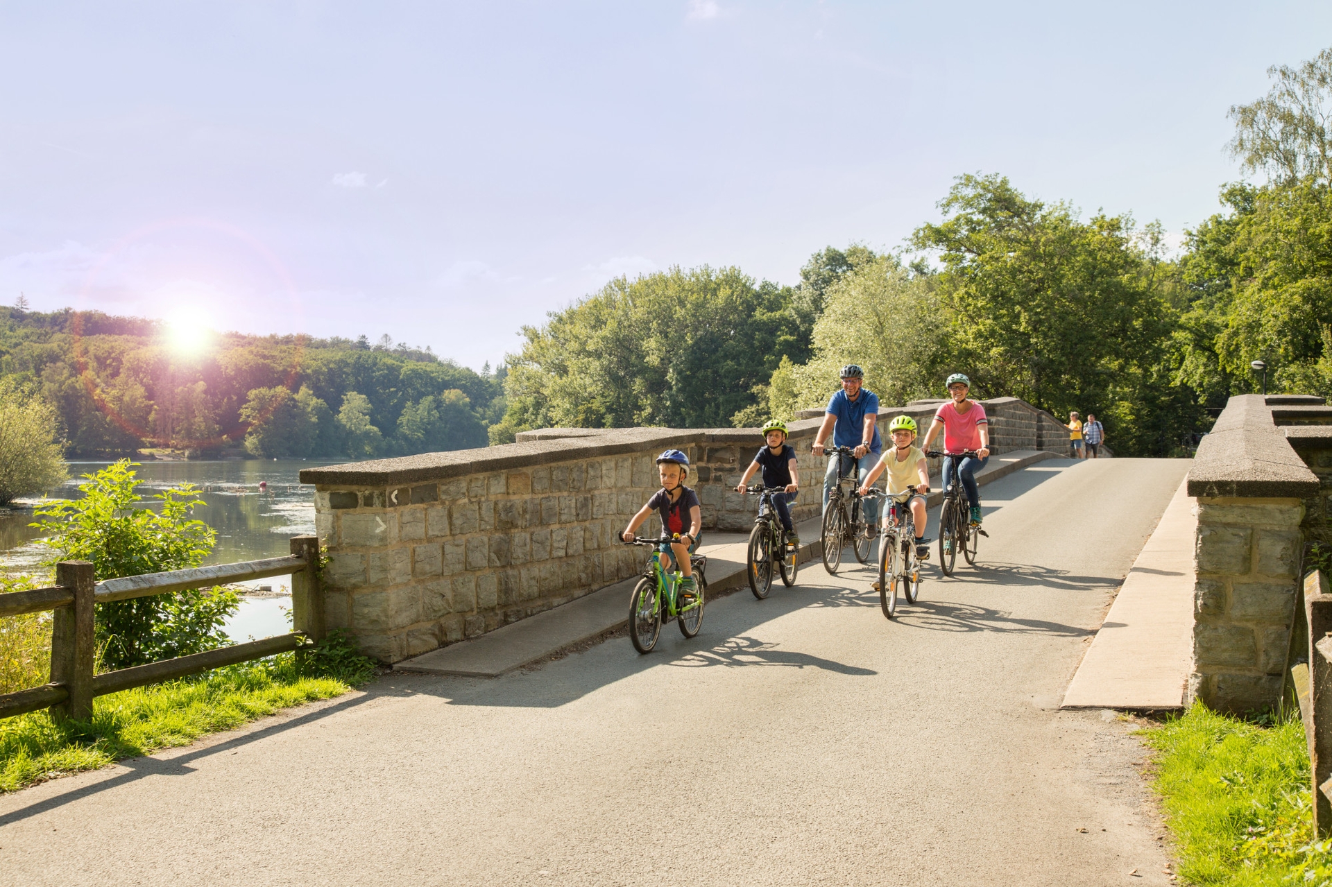 The Sauerland is "Germany's inspiring outdoor region" - and for good reason. Because on 5,000 square kilometers in the swaying low mountain range landscape, characterized by dense forests, wide meadows and clear lakes, there are so many opportunities for experiences of all kinds. Germany's first and largest quality hiking region is located here. Three major long-distance hiking trails cross the landscape. Numerous themed and one-day routes appeal to leisurely hikers. Cyclists are out and about on the numerous river and railroad cycle paths, enjoying nature and taking it easy or using the extensive network of cycle paths connected by numbered junctions for spontaneous rides. Mountain bikers, Gravelbikers and racing cyclists are challenged by the varied topography. There are also five large reservoirs in the middle of the densely wooded landscape, which attract countless guests to their shores and onto the water year after year with their many activities. In the cold season, the Sauerland winter sports arena with its wide range of ski slopes and toboggan runs is the largest winter sports area north of the Alps. This variety of experiences makes the Sauerland outdoor region one of the most popular destinations for holidaymakers and day-trippers in North Rhine-Westphalia and Germany.