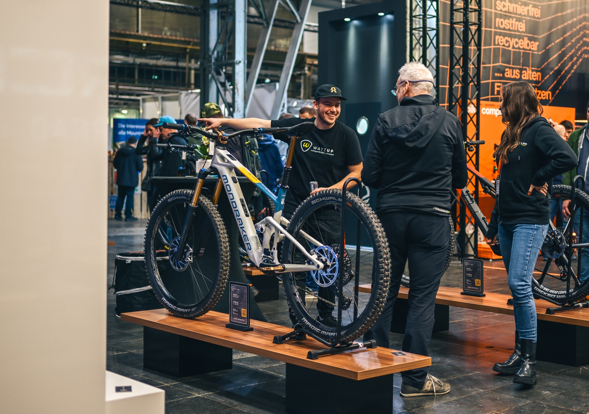 “The bike shop for MTB and E-MTB" WatzUp is the name for mountain bikes in the Ruhr area - and has been since 1993. In our shop in Oberhausen, at the foot of the Haniel dump, you will find a large selection of mountain bikes and e-mountain bikes as well as clothing and equipment. But our bike shop would be nothing without the people who work here: We are passionate about bikes and bring all our passion and expertise into every consultation, every sale and every repair. And if standard equipment isn't your thing, you've come to the right place. With our own professional workshop and years of experience, we build your custom bike with all the components you want. Come over!” We will publish the exact stand location here shortly after the trade fair!